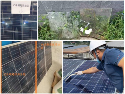 ST超滑自清洁涂层是本公司与长安大学联合开发的纳米级功能涂料产品。涂刷本产品之后,会在基材表面形成纳米级超滑结构,通过有效降低表面与灰尘之间的静电力作用,形成自润滑、自清洁效果。当基材倾角较大时,灰尘、沙土等污染物可在接触涂层表面后,自然滑落防止沉积,当基材倾角较小时,可利用雨水、轻度清洗等实现表面清洁。